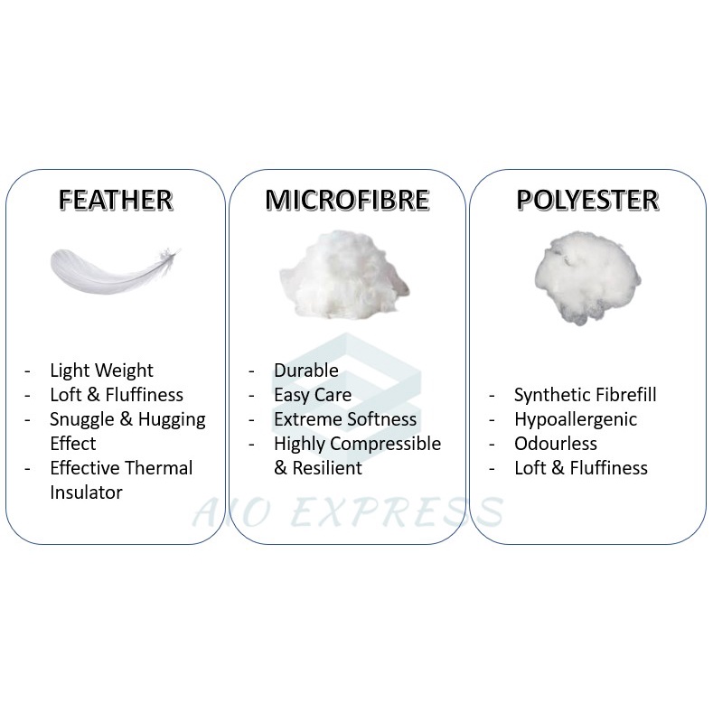 Quality:Good Appearance:Good Performance:Good Fast delivery. This is my second order however I found that the cheaper one is more fluffier and dense as compared to this. This have a more classy outlook and available in white though but thinner. Will repeat order but will just buy the cheaper ones since more comfortable.