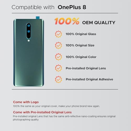 Sponsored Ad - Compatible with OnePlus 8 Back Cover Replacement, OnePlus 8 Back Housing Door with Pre-Installed Camera Lens, Repair Tools & Instruction, Glacial Green