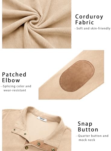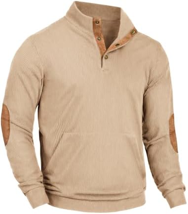 Sponsored Ad - Mens Corduroy Sweatshirt Long Sleeve Pullover Quarter Button Fall Sweat Shirts