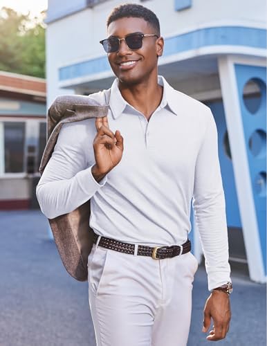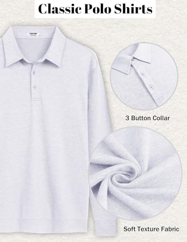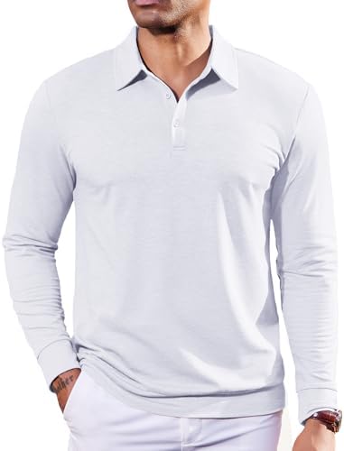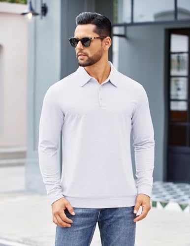 Mens Polo Sweatshirts Long Sleeve Casual Lightweigt Polo Shirts Button Down Golf Shirt