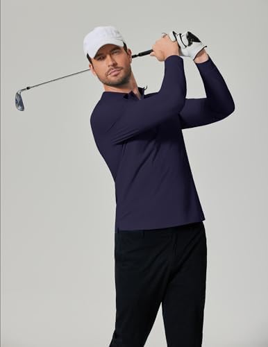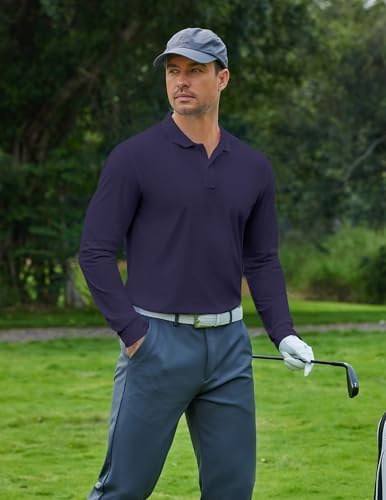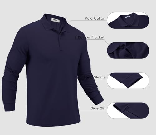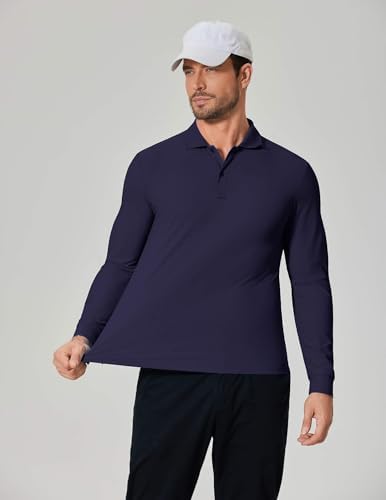 Men's Long Sleeve Polo Shirts Moisture Wicking Golf Shirts Lightweight Athletic Collared Shirt