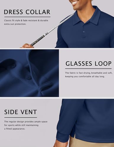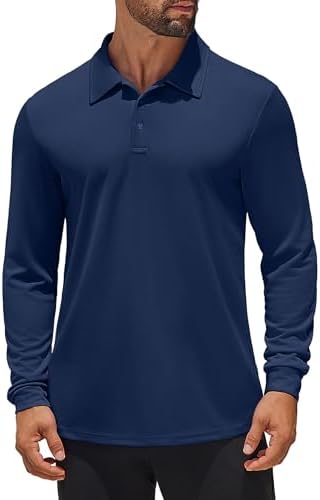 Men's Long Sleeve Polo Shirts Quick Dry Moisture Wicking Lightweight Golf Shirts Casual Collared Shirt