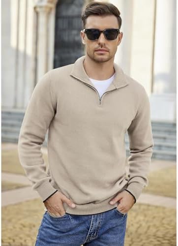Sponsored Ad - Men's Quarter Zip Up Pullover Slim Fit Lightweight Mock Neck Long Sleeve Sweaters