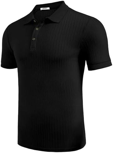 Men's Textured Polo Shirts Short Sleeve Slim Fit Casual Button Polo T-Shirt Summer Collared Golf Shirt