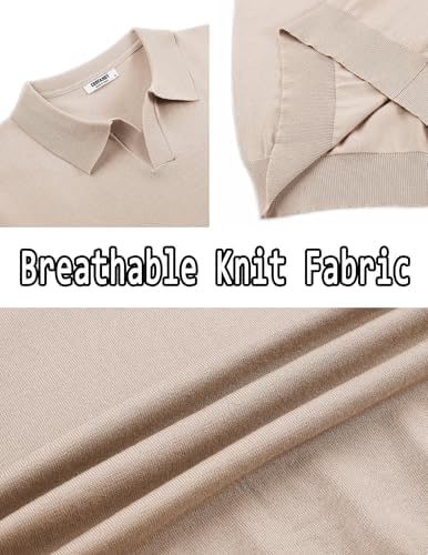 Mens Knit Polo Shirts V Neck Short Sleeve Stretch Polo T Shirt Casual Golf Shirts