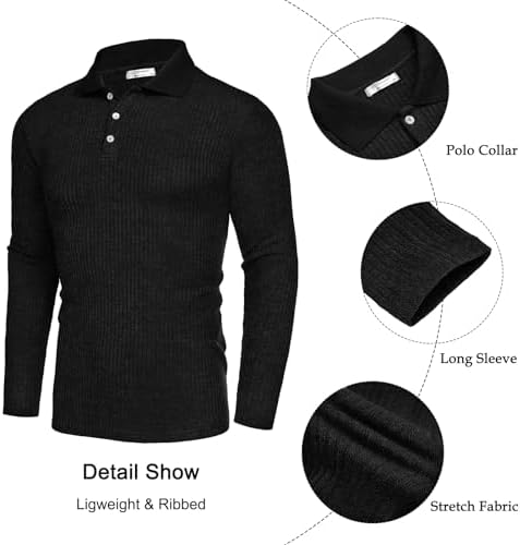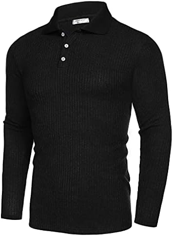 Men's Casual Polo Shirts Long Sleeve Textured Knit Tee Shirt Wrok Tshirts