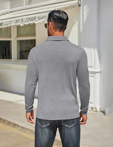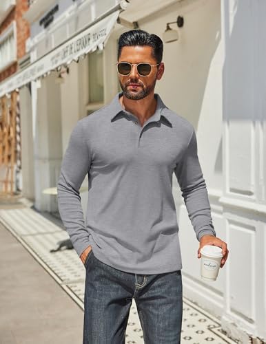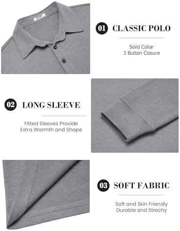 Sponsored Ad - Mens Long Sleeve Polo Shirts Classic Casual Button Polo Tee Lightweight Collared Golf Shirt