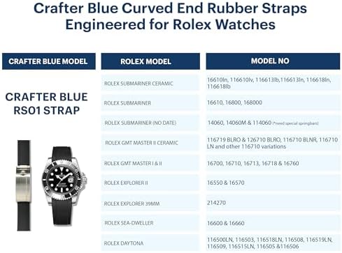 Sponsored Ad - RS01 Curved End Rubber Strap Watch Band Compatible with 40mm Rolex Submariner, Explorer, Explorer II, GMT Master, GMT Master II, Daytona, and Yachtmaster