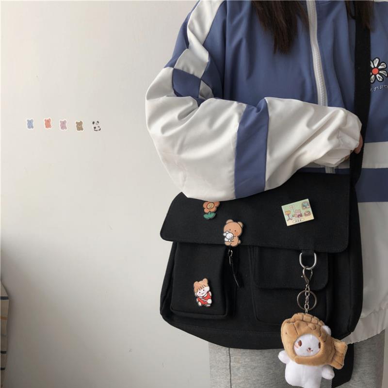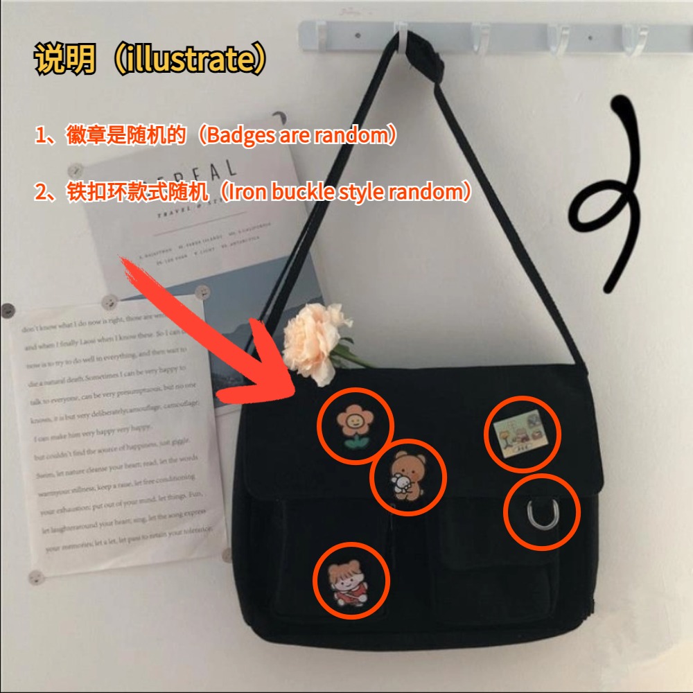 【Crazy Bag】Japanese Harajuku Cute Retro Girl Messenger Bag Canvas Student Bag School Bag Student Shoulder Bag Female Bag