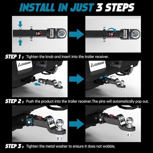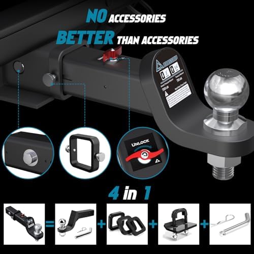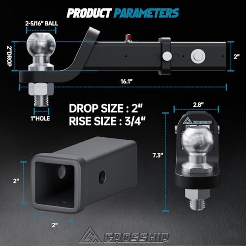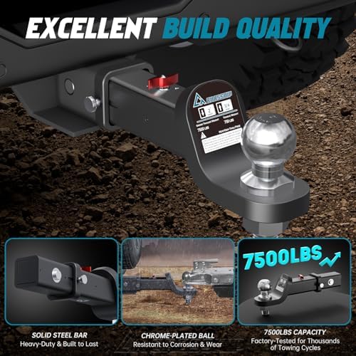 No-Accessory Trailer Ball Mount Hitch - Fits 2'' Receiver, 2'' Drop Ball Mount, Solid Dual Ball 2-5/16" Tow Hitch 7500 LBS GTW Heavy Duty Truck with Pin for SUV, Truck, RV, ATV