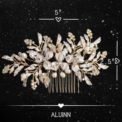 ALUINN Crystal Bride Wedding Hair Comb Pearl Hair Piece Rhinestone Bridal Hair Accessories for Brides Bridesmaids Women (Gold)