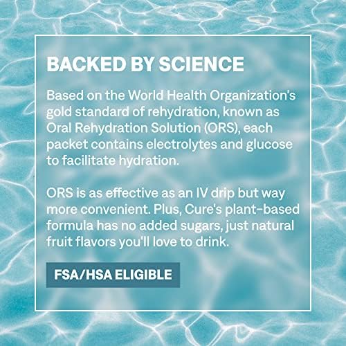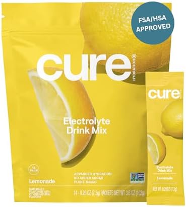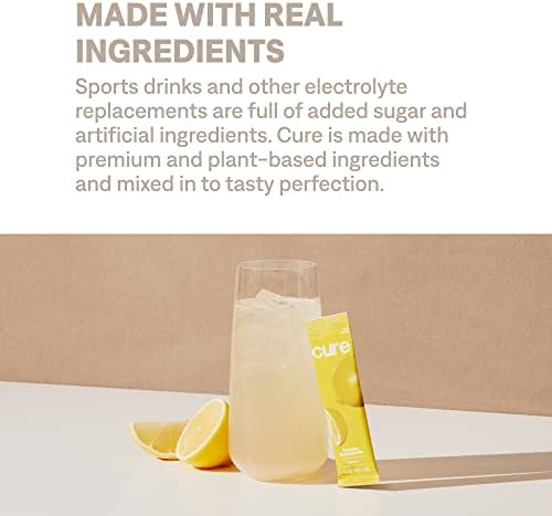 Cure Hydration | Plant-Based Electrolyte Drink Mix | No Added Sugar | FSA & HSA | Dehydration Relief Powder Made with Coconut Water | Non-GMO | Vegan | Pouch of 14 Packets - Lemonade