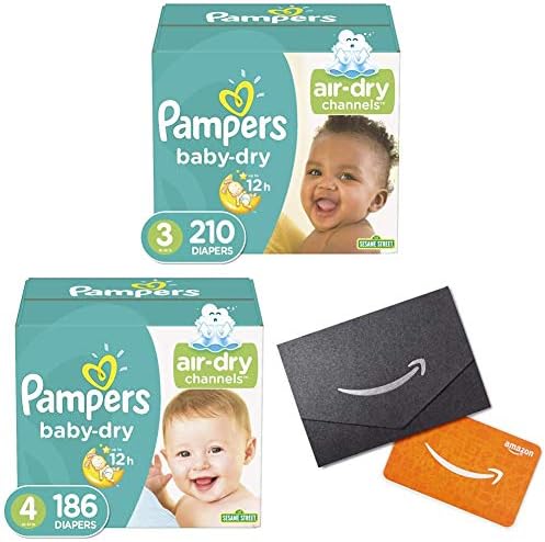 Diapers Size 3, 210 Count - Pampers Baby Dry Disposable Baby Diapers with Diapers Size 4, 186 Count and Amazon.com Gift Card in a Mini Envelope