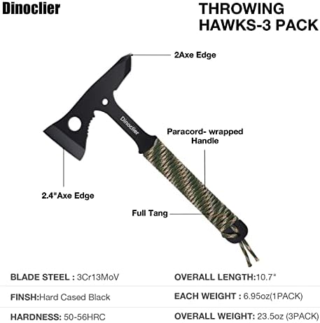 Throwing Axes and Tomahawks, Throwing Hawks Axes Pack of 3, 10.7" Full Tang Tactical Throwing Axes Set with Nylon Sheath