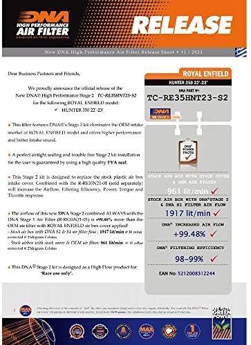 Sponsored Ad - DNA Cover Stage 2 Filter Compatible for Royal Enfield 350 Hunter (22-24) PN: TC-RE35HNT23-S2