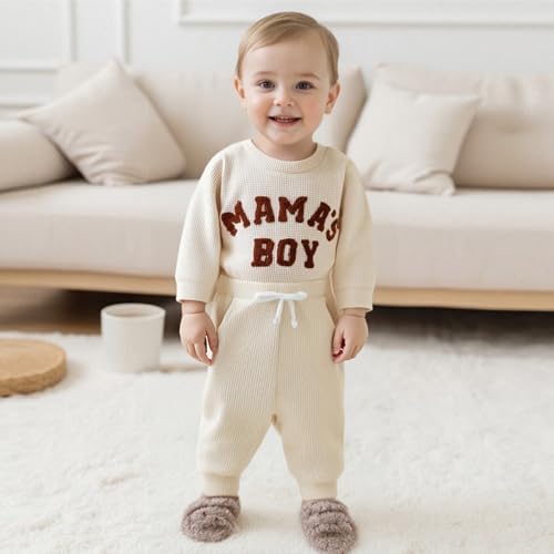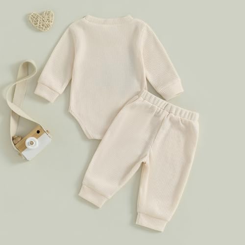 Baby Boy Clothes Letters Embroidered Baby Sweatshirt Romper Waffle Pants Set Infant Boy Fall Winter Outfits