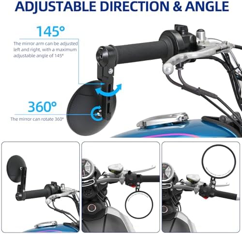 Sponsored Ad - Motorcycle Mirrors for Handlebars,Universal Black CNC 4" Round Motorcycle Bar End Mirrors for 22 and 25mm Handlebar Compatible with Most Motorcycles Honda Grom Scooters etc.