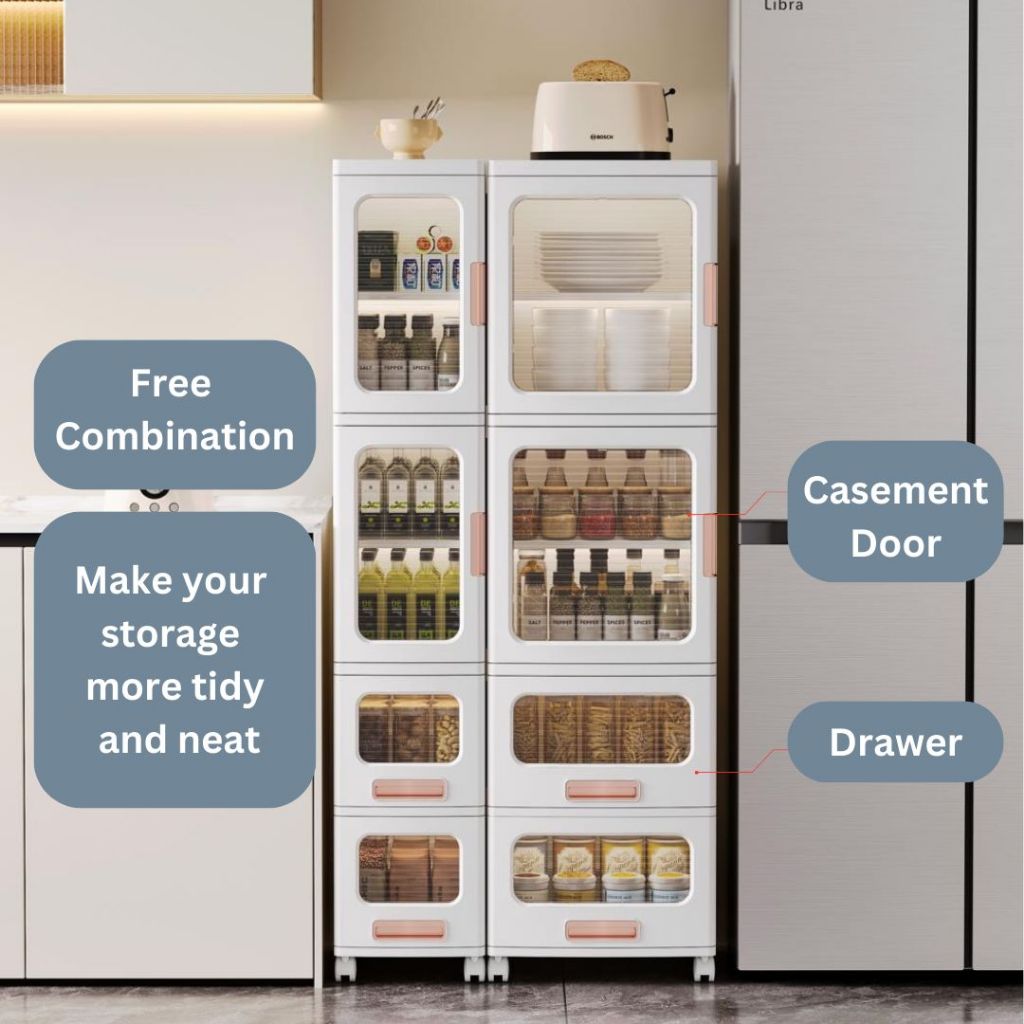 Easyhome.sg Slim Cabinet F88 / Plastic Storage Drawers / kitchen Organizer Shelf Rack