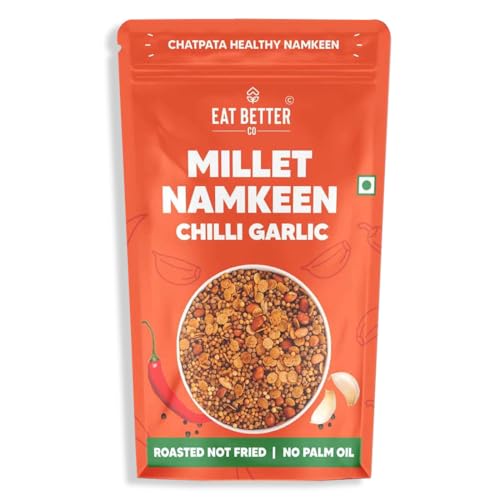 Eat Better Co – Millet Namkeen – Chilli Garlic – Chatpata, Healthy Namkeen Snacks – Roasted, Not Fried | No Palm Oil | Healthy Replacement of Chips & Bhujia (100 gm)