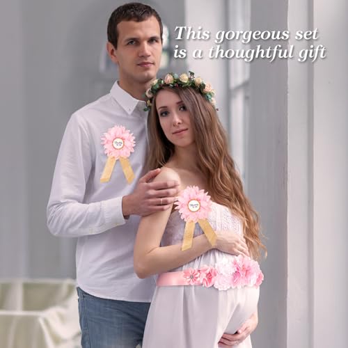Baby Shower Belly Sash - Pink Bow Mom to be Sach Satin Ribbon Belly Band for Wedding Pregnant Baby Shower Party Photoshoot (PINK)