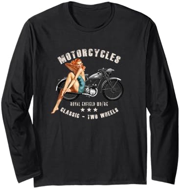 Pin up Girls Royal Enfield WDRE Vintage Motorcycle WW2 Long Sleeve T-Shirt