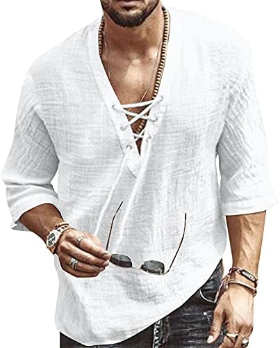 Men's Fashion Shirt Short Sleeve Beach V-Neck Drawstring Printing Yoga African Summer Top
