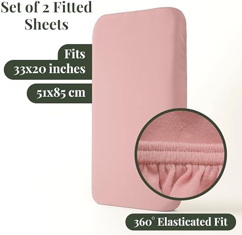 GOTS Organic Bassinet Sheets 33x20 for Baby Delight Beside Me Dreamer, Maxi-COSI Iora, 200GSM Thickest & Softest Turkish Cotton, 2-Pack Bedside Sleeper, Bassinet Sheets Rectangle Angelbliss Baby