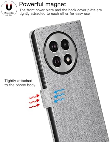 for OnePlus 13 Wallet Case, PU Leather Flip Folio with [Shockproof TPU Inner Case], Kickstand Card Slots Ultra Slim Strong Magnetic Closure Cover for OnePlus 13 5G 2025 (Gray)