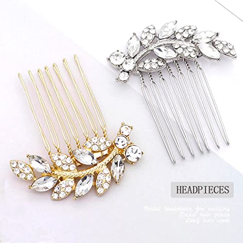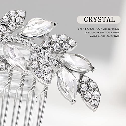 Foyte Crystal Bride Wedding Hair Comb Leaf Bridal Headpieces Rhinestone Hair Pieces Bridesmaid Side Combs Hair Accessories for Women (silver leaf)