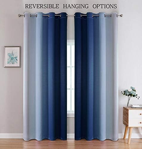 G2000 Blackout Curtains & Drapes for Bedroom Living Room 84 Inches Long Navy Blue and Greyish White Room Darkening Window Treatments Ombre Thermal Insulated Light Blocking Grommet Backdrop 2 Panels