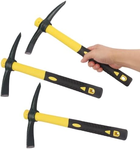 3 Packs 15 Inch Garden Pick Axes with Fiberglass Handle,Hand Pickaxe, Cast Steel of Pick Axes Head for Gardening, Camping, Prospecting, and Outdoor Activities