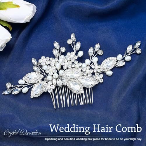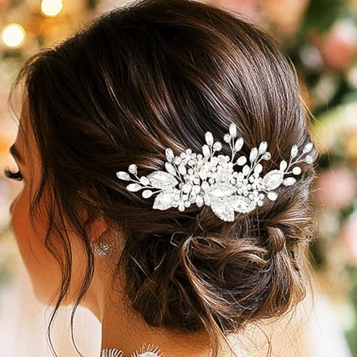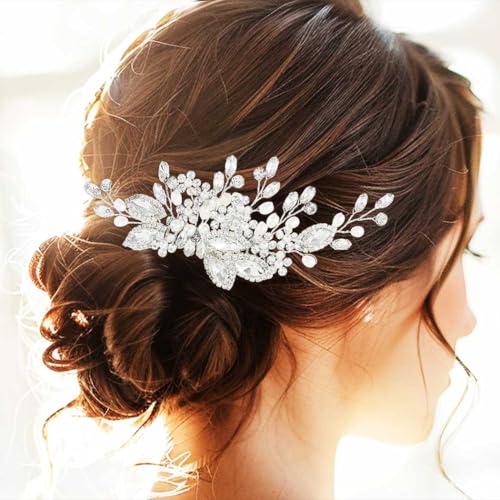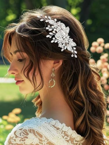 Sponsored Ad - GORAIS Crystal Bride Wedding Hair Comb Silver Bridal Hair Piece Rhinestone Hair Accessories for Women and Girls (Silver)