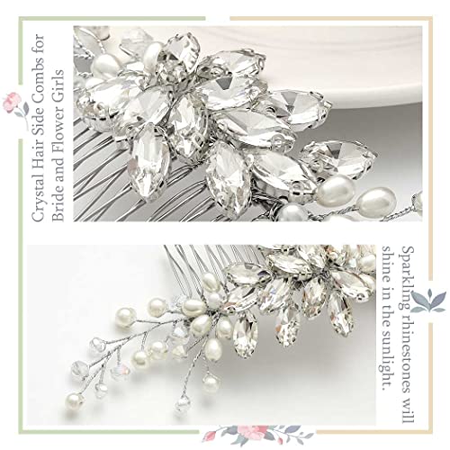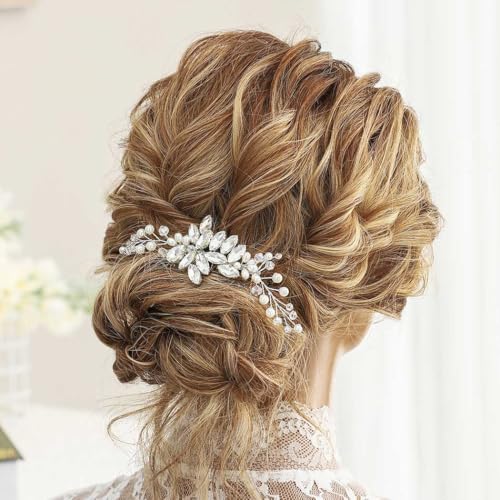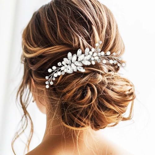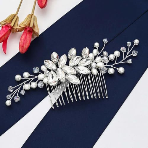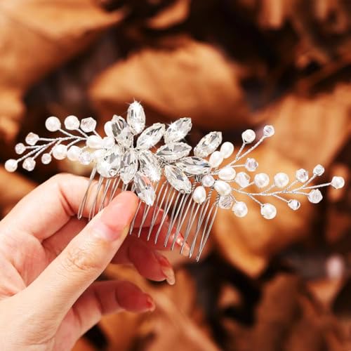 Gorais Crystal Bride Wedding Hair Comb Pearl Bridal Hair Pieces Rhinestone Hair Accessories for Women and Girls (A-Silver)