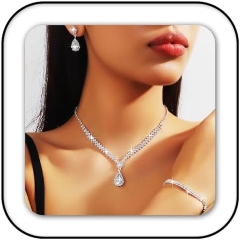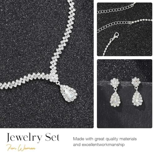GORAIS Prom Wedding Jewelry Sets Rhinestone Bridal Necklace Earrings Bracelet Set Crystal Costume Jewelry for Brides