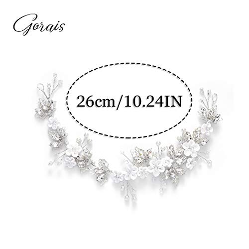 GORAIS Flower Bride Wedding Hair Vine Crystal Bridal Pearl Headpiece Prom Leaf Hair Accessories for Women and Girls