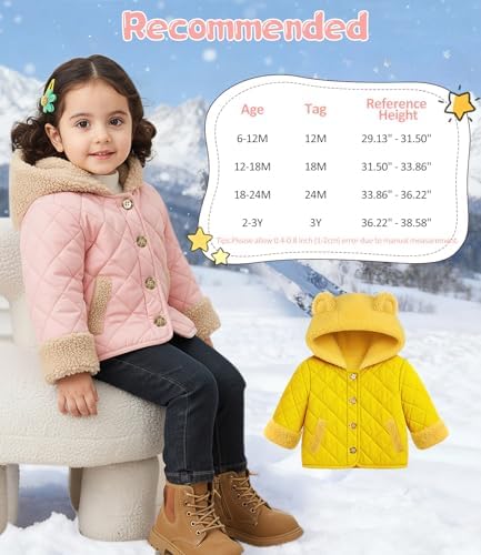 Sponsored Ad - Baby Girl Winter Jackets Coat with Hooded Toddler Light Button-up Outwear 12M-3Y