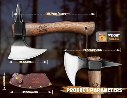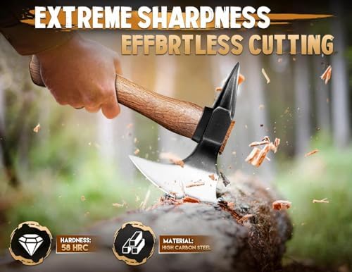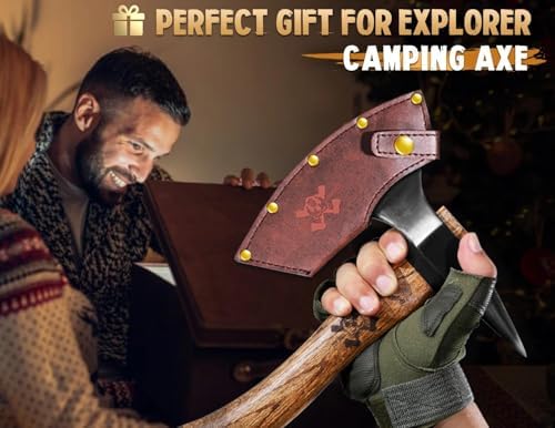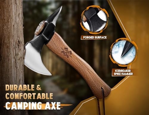 Grumpy Bear Camping Axe 11 Inches with High Carbon Steel, Forged Blade, Natural Wood Handle, Safety Lanyard – for Chopping, Wood Splitting, Hiking, and Outdoor Activities