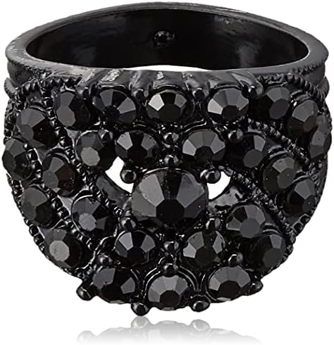 "Basic Jet and Silver Wide Band with Enamel and Stones Ring, Size 8 (89117094)