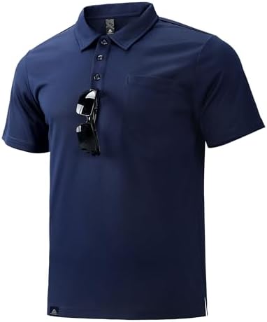 Men's Polo Shirts with Pocket Short Sleeve Quick Dry Moisture Wicking Golf Shirts Business Casual Work Polos