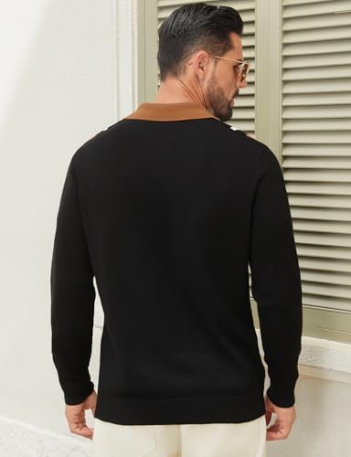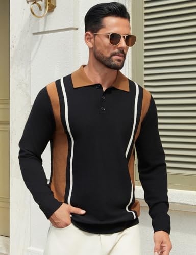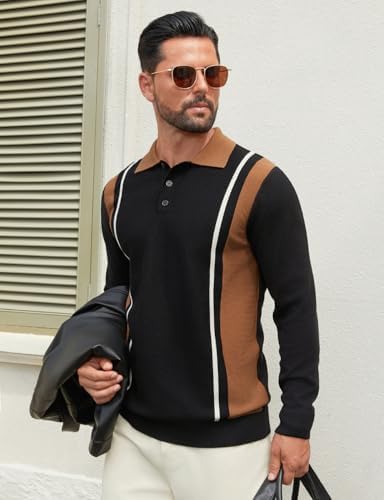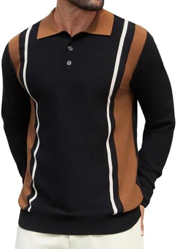 Sponsored Ad - Men's Vintage Striped Polo Sweater Color Block Lightweight Long Sleeve Collared Knit Shirts