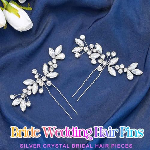 HEREAD Crystal Bride Wedding Hair Pins Silver Rhinestone Hair Piece Hair Accessories for Women and Girls (Pack of 2) (Silver)