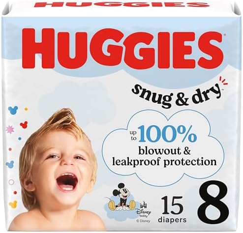 Size 8 Diapers, Snug & Dry Baby Diapers, Size 8 (46+ lbs), 15 Count, Packaging May Vary