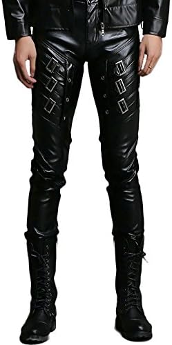 Men`s Black Slim Fit Soft PU Faux Leather Biker Pants