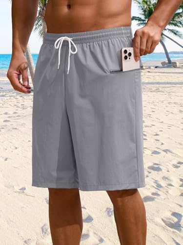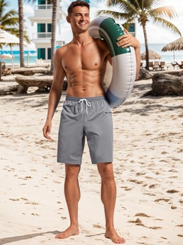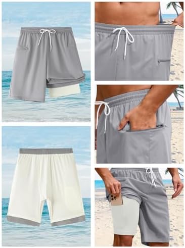 Mens Swim Trunks with Compression Liner 9 Inch Quick Dry 2 in 1 Swimming Board Shorts Bathing Suit w/Zipper Pockets