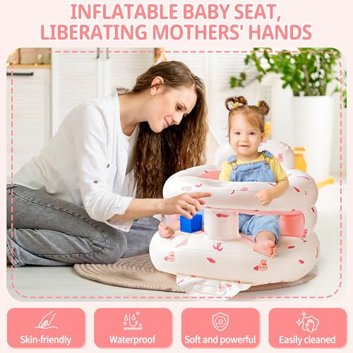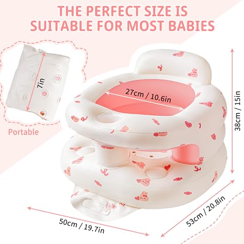 Inflatable Baby Seat with Full Enclosure, Comfortable Sit Me Up Baby Chair for Learning to Sit, Built in Air Pump Blow Up Infant Back Support Floor Seat for Babies 3 Months & Up (Bunny)