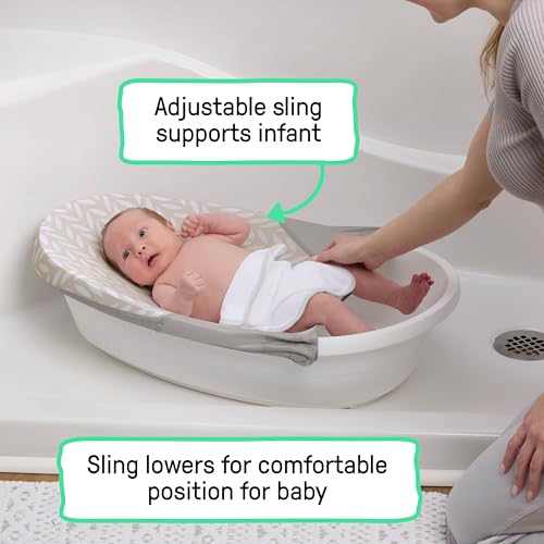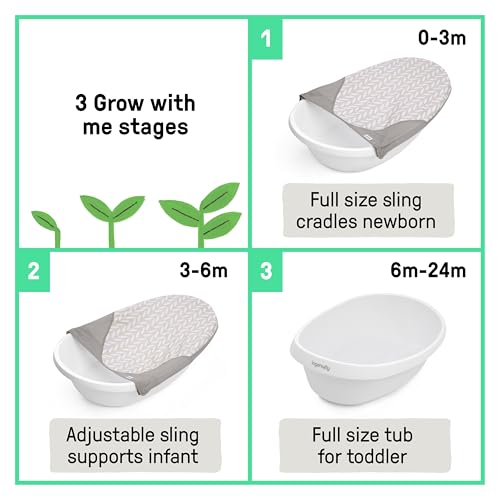 Ingenuity Sylvi Full Comfort 3-in-1 Grow with Me Baby Tub, Newborn to Toddler Baby Bath Tub, Supportive Sling, Includes Sylvie Wash Mit & Book, Easy Release Drain Plug, 0M+