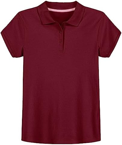 Girls' School Uniform Short Sleeve Polo Shirt, Button Closure, Comfortable & Soft Interlock Fabric