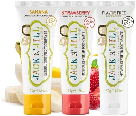 Jack N' Jill Natural Baby Toothpaste - Fluoride Free Training Toothpaste for Babies 6 Months and Up, Safe to Swallow, 40% Xylitol, BPA Free - 1.76 oz (Variety Pack of 3)