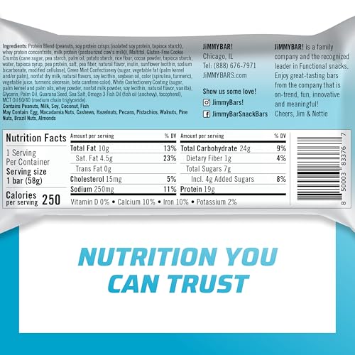 Sponsored Ad - JiMMYBAR! Mint Cookies N Cream - 19g Protein Bars - 7g Low Sugar- 12 Count - 58g Health Bars - Functional Snack with Real Peanut Butter & Hand-Drizzled Chocolate Protein Bar