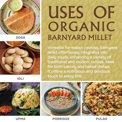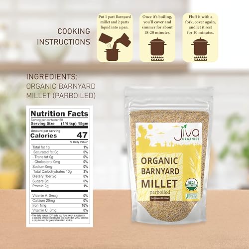 Jiva Organics Barnyard Millet 2 LB Bag | Whole Grain, Gluten-Free, Non-GMO | Protein & Fiber-Rich Superfood for Healthy Cooking